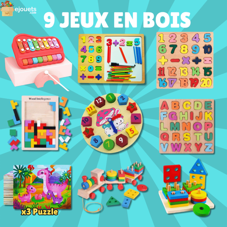 Pack de 9 Jouets Montessori en bois naturel, jouets éducatifs, ludiques et amusants pour les petits