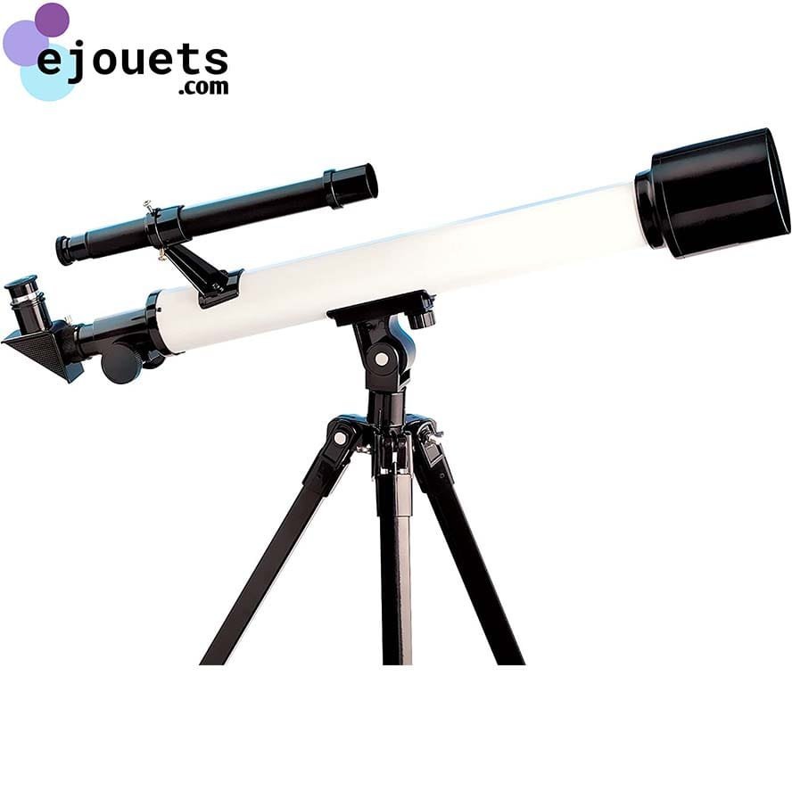 Avec tous les accessoires pour l’observation nocturne : trépied de sol de 89 cm, lentille de 50 mm de diamètre, objectif chercheur de 6×25 mm, 2 oculaires interchangeables, 1 lentille de Barlow 2.3x.