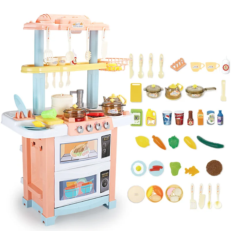 Ensemble de cuisine avec sons, lumières, cuisinière, vapeur évier et nourriture de jeu 38 PCS