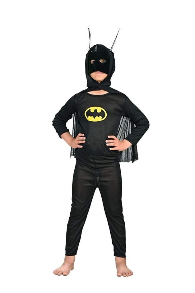 Déguisement Batman comprenant 3 pièces ( Pantalon, top, et un masque aux yeux attaché à une cape ).