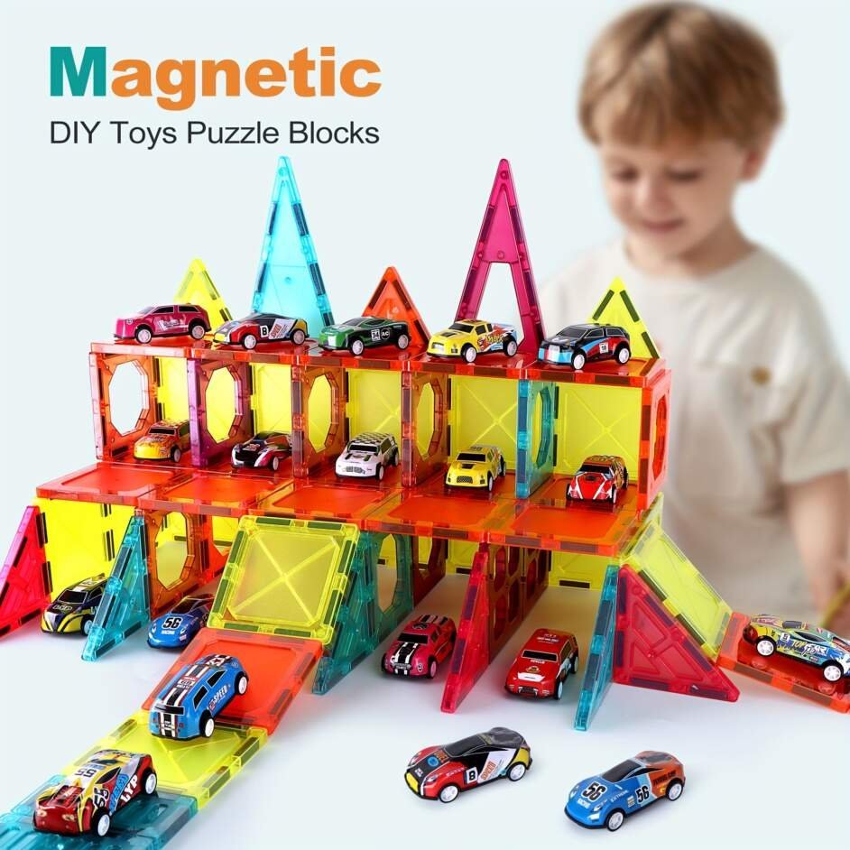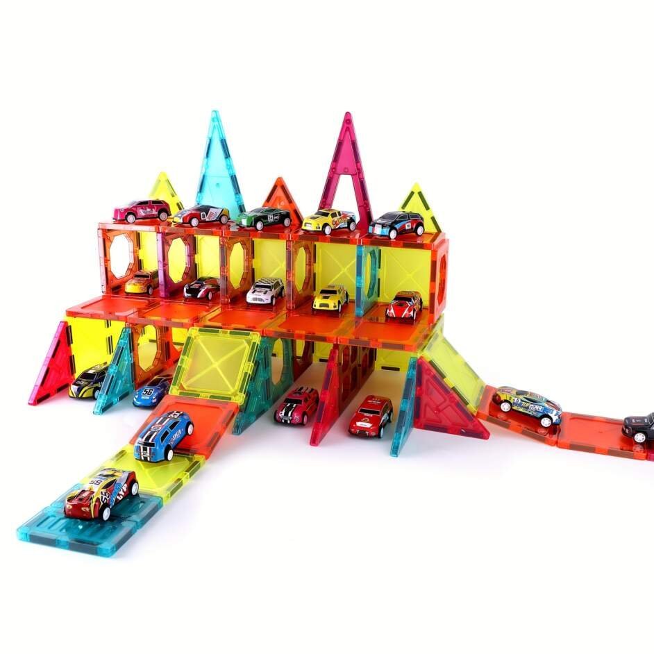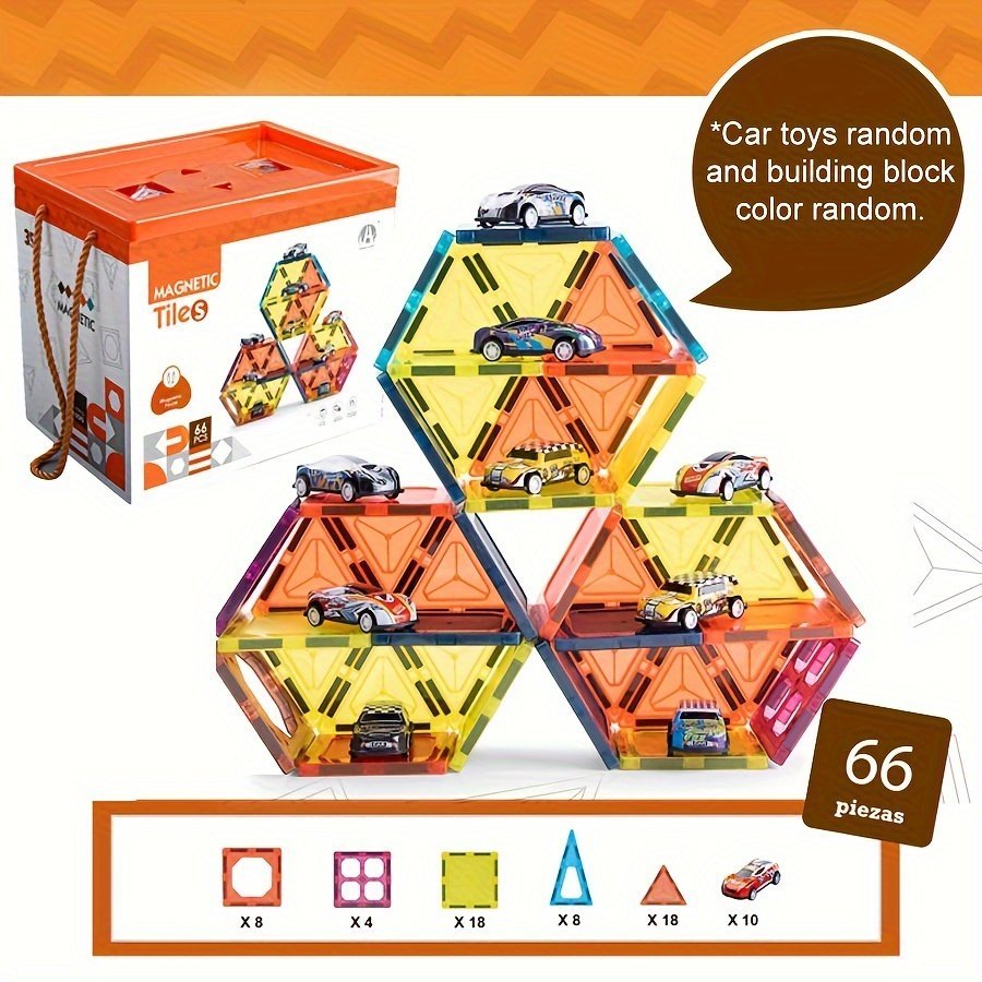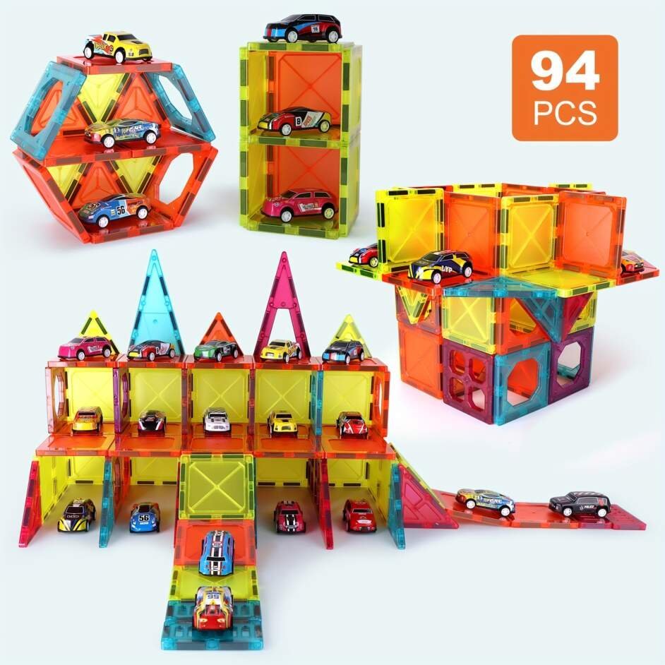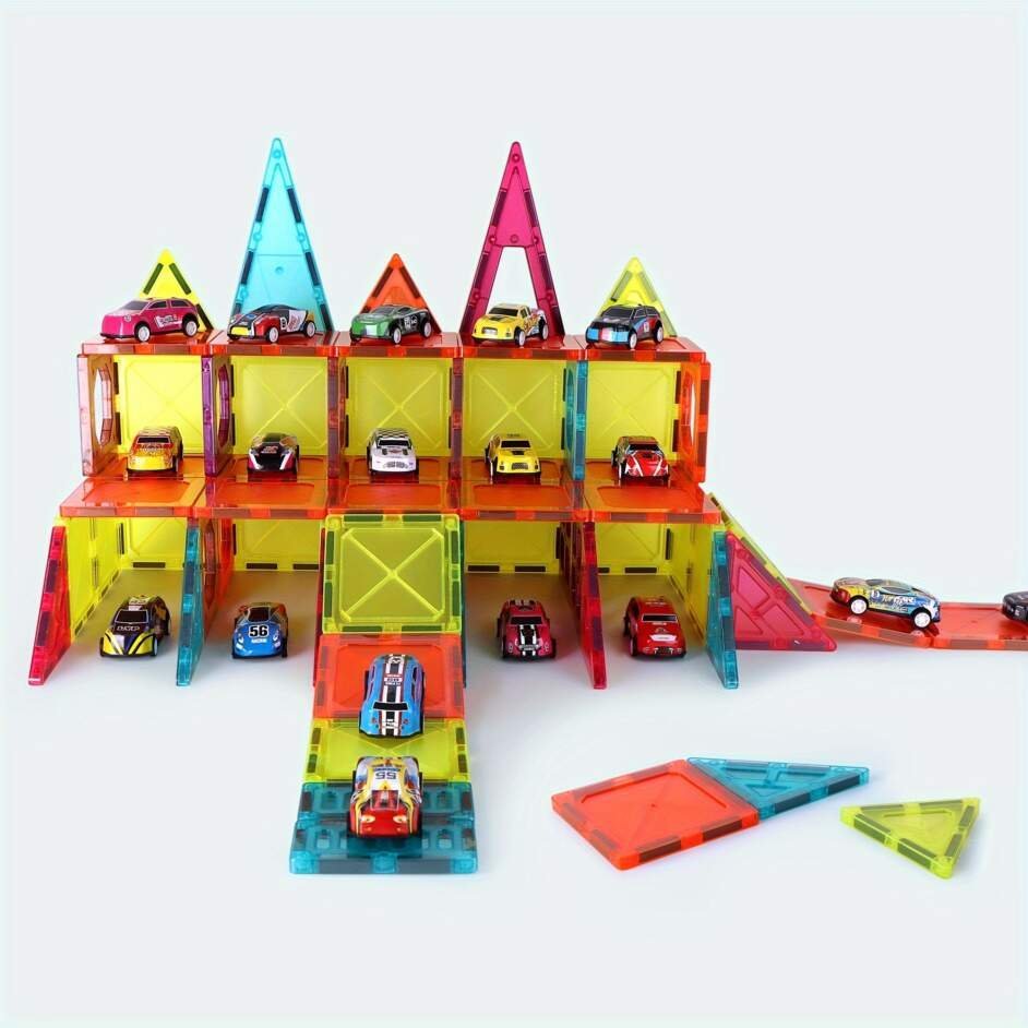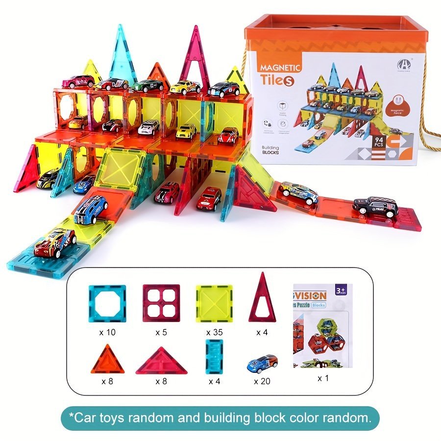 Ensemble de Blocs de Construction Magnétiques & Voitures à Tirer pour Garage de Stationnement – 66/94pcs,