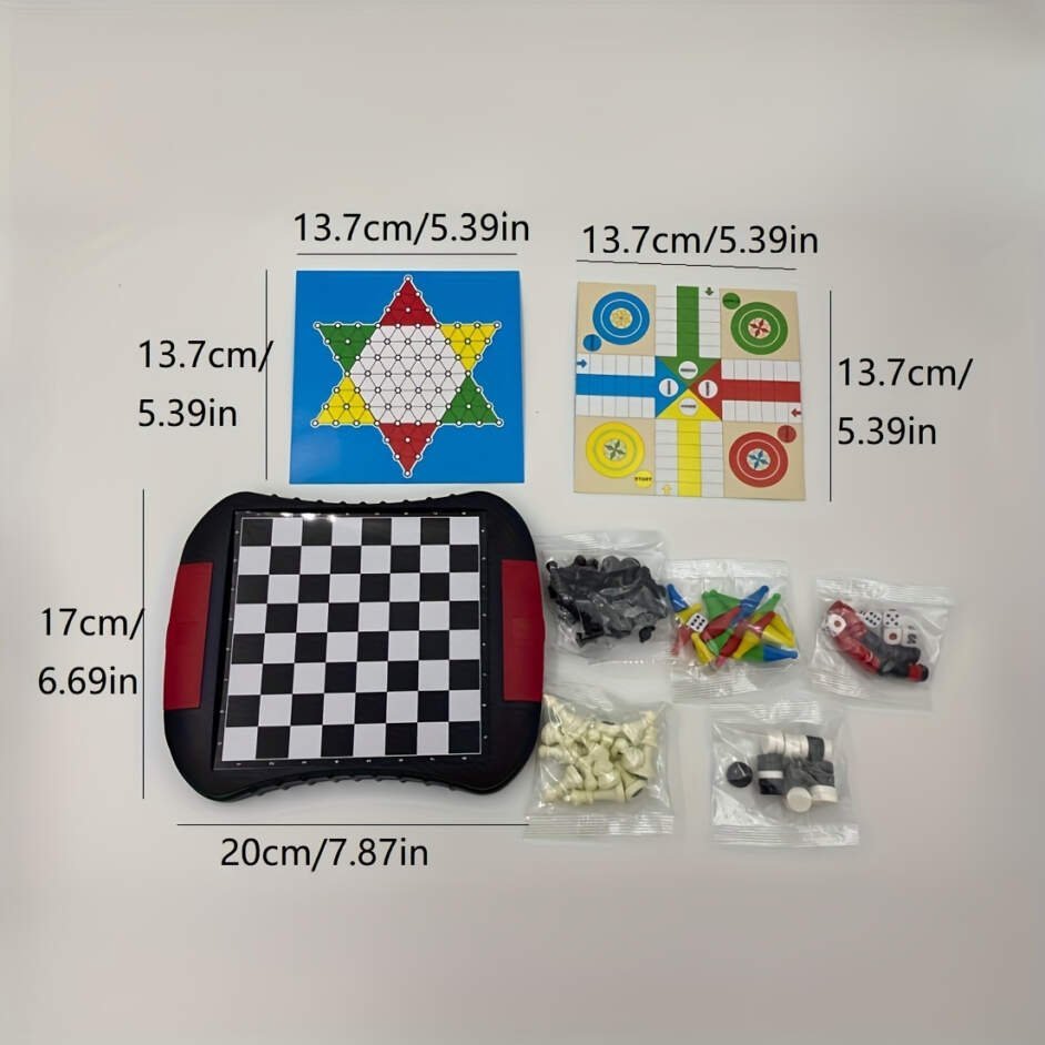 Jeu de Famille 6-en-1 – Échecs Classiques, Ludo, Backgammon & Plus