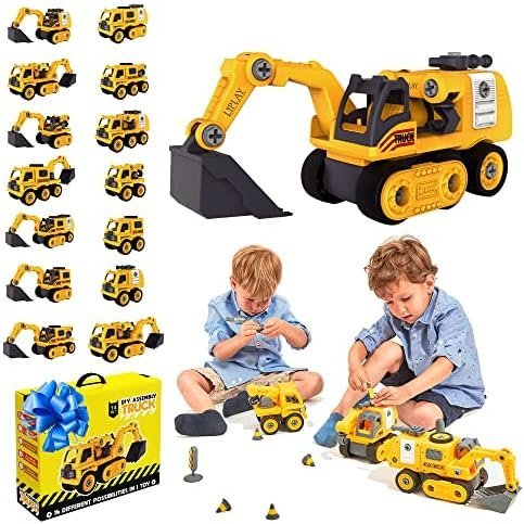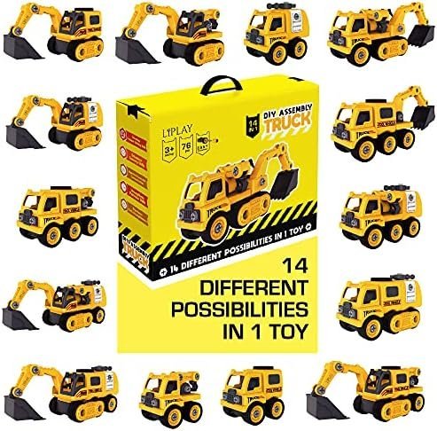 Jouets de construction de camion d’assemblage à monter soi-même 14 en 1 – Jouet d’excavatrice démontable – Jouets d’excavatrice 76 pièces avec tournevis et manuel d’instructions