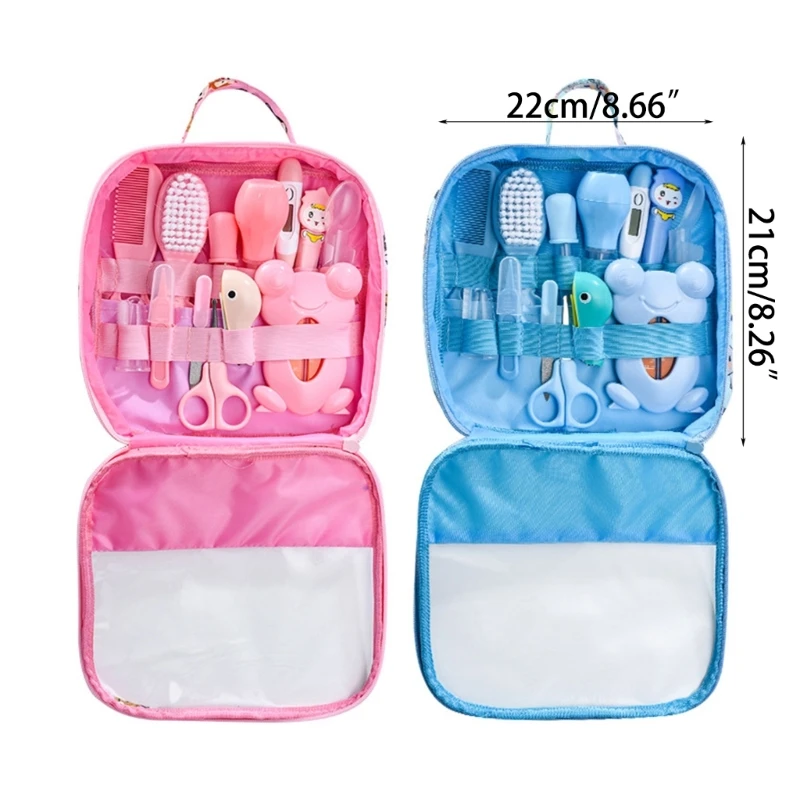 Ensemble polyvalent Cet ensemble de soins comprend une variété d’outils couramment utilisés tels que pince à ongles, thermomètre, peigne, brosse, etc., répondant aux différents aspects des soins quotidiens pour bébés.