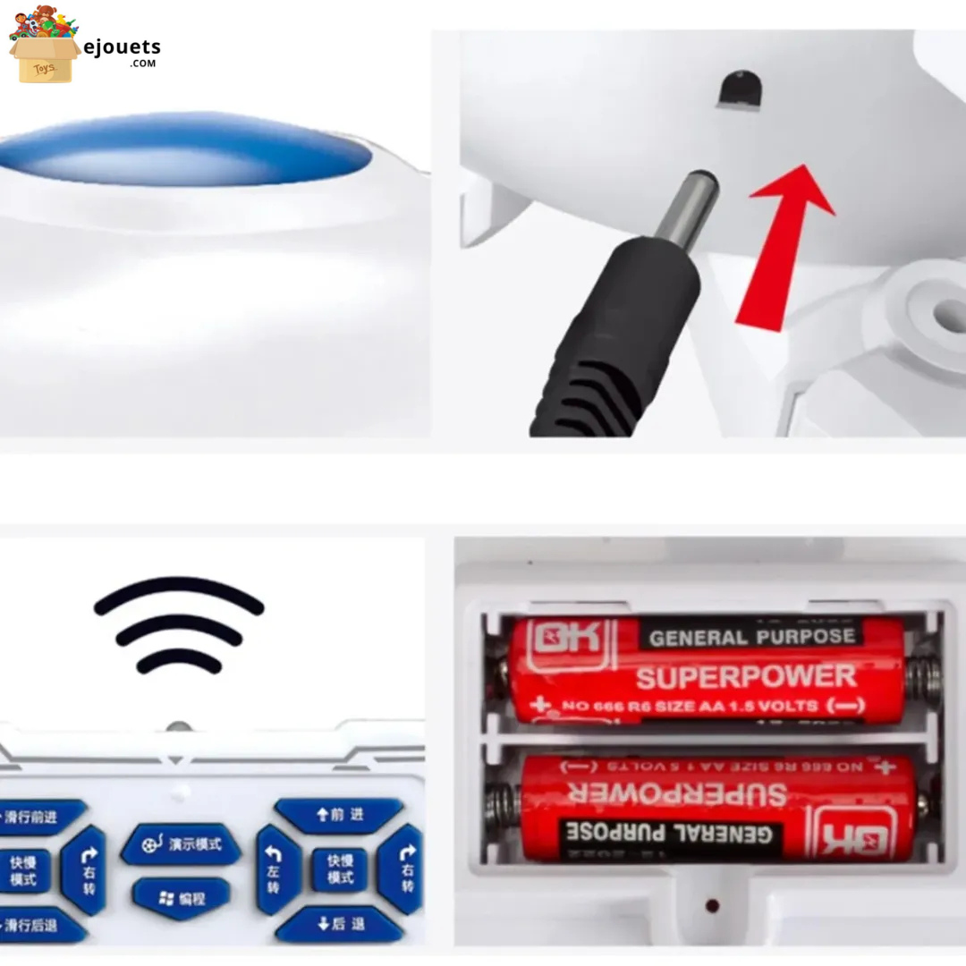 Ce jouet de dinosaure et Lumineux, Le robot dinosaure mesure environ 30 cm de long, 25 cm de haut et 12 cm de large. Des fonctions telles que jouer de la musique, marcher, éclairer les yeux et utiliser des phares font partie des capacités de ce robot dinosaure jouet. Le dinosaure jouet peut produire divers sons et est également programmé pour ses propres mouvements. Ce robot dinosaure jouet est rechargeable et sa prise de connecteur de charge est incluse dans l’emballage du produit. Le corps de ce dinosaure télécommandé est fait de matériaux brillants de haute qualité. Ce robot dinosaure est contrôlé par 2 piles AA (non incluse).