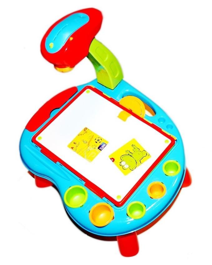 - Ce jouet permet à votre enfant de s’exprimer artistiquement. Choisissez les images fournies sur les diapositives, allumez le projecteur et tracez les lignes. Ensuite, coloriez ou peignez le tableau. Idéal pour le contrôle du crayon. Le projecteur se plie à plat pour un rangement facile. Ce bureau facile à assembler et à plier est un excellent kit d’apprentissage pour votre bébé comme aide à l’apprentissage préscolaire. Le bureau est livré avec un projecteur et des diapositives pour projeter des formes intéressantes sur la feuille de dessin que l’enfant pourra copier et colorier.