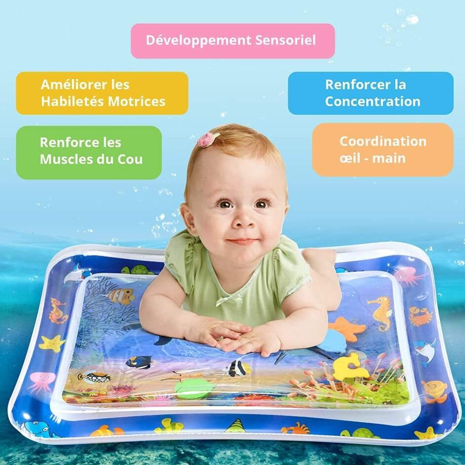 Tapis de jeu d’eau gonflable pour coussin pour bébé à remplir avec l’eau ou l’air 3-6-9 mois