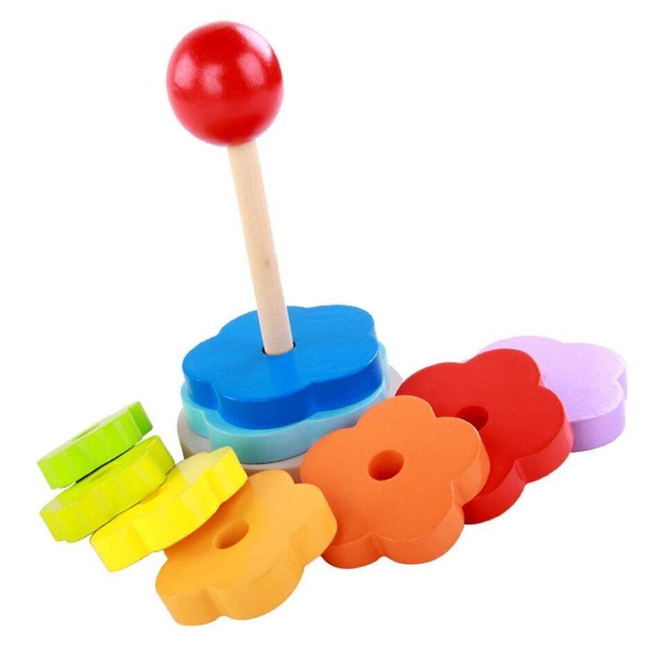 - De jolis blocs en forme de fleur permettent aux enfants de construire, d’empiler et de rouler.